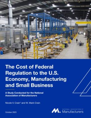 The NAM’s 2023 study, “The Cost of Federal Regulation to the U.S. Economy, Manufacturing and Small Business,” provides a top-line estimate of regulatory costs on the U.S. economy and provides a snapshot of how the regulatory cost burden is distributed across major sectors of the U.S. economy and among three categories of firm sizes.